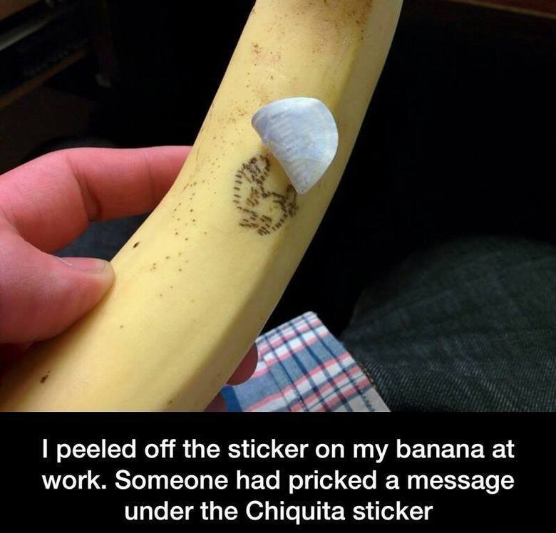 Guess Who? Flag crispybomb (See more...) next random - Fav Favorite Comment ✖ Top NextComment (Enlarge) next Tags: Banana | dick butt I peeled off the sticker on my banana at work. Someone had pricked a message under the Chiquita sticker ... +585 Views: 26639 Favorited: 15 Submitted: 02/11/2015 Share On Facebook -Favorite +Favorite Unsub from crispybomb Subscribe to crispybomb