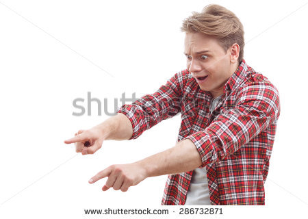 "Frightened Guy Pointing Something with His Hands and Keeping the Glance Down" tells a story worth a thousand words.