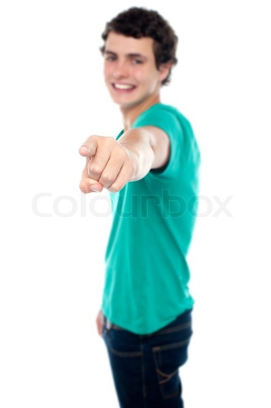 This is "Handsome Guy Pointing on Isolated White Background", to what he's pointing, we may never know.