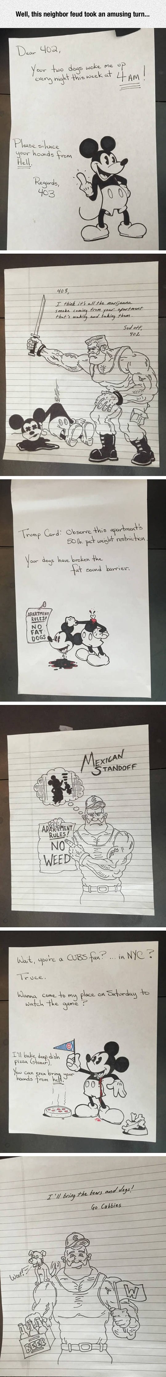 the dogs wake you and you can't do anything immediately. But maybe if he sent a more polite letter...idk