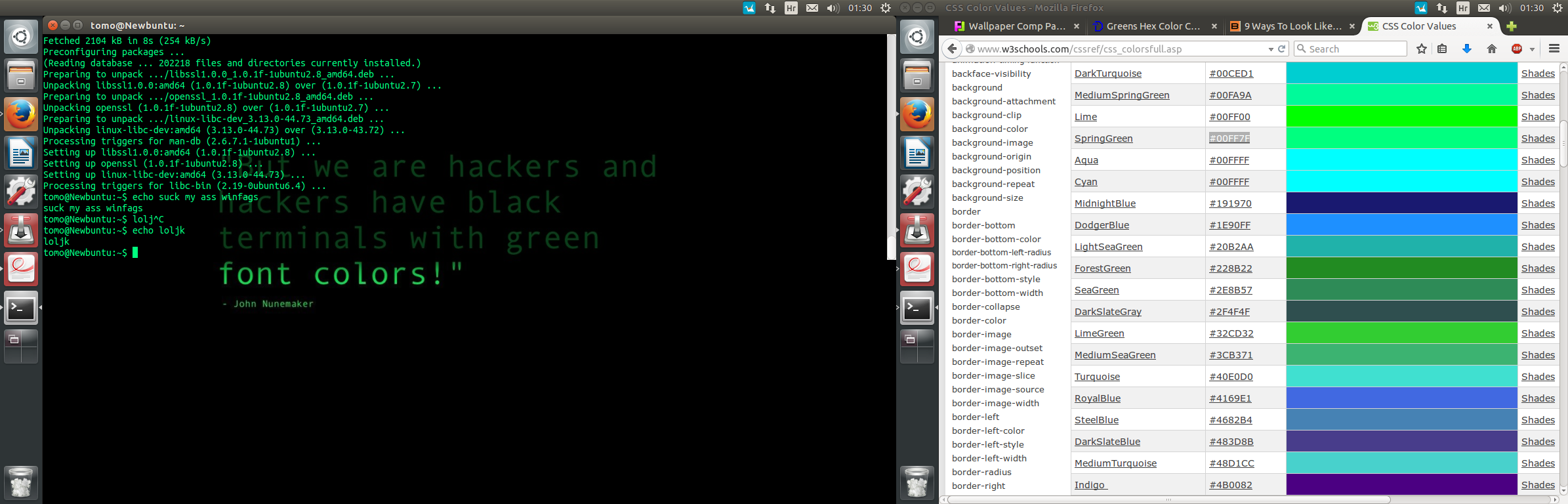 This is a screencap of my desktop back when I first found the wallpaper, immediately changed font colour to green. The image is messed up cause it was a dual monitor setup and one was a 4:3.