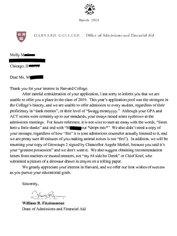 Harvard Rejection