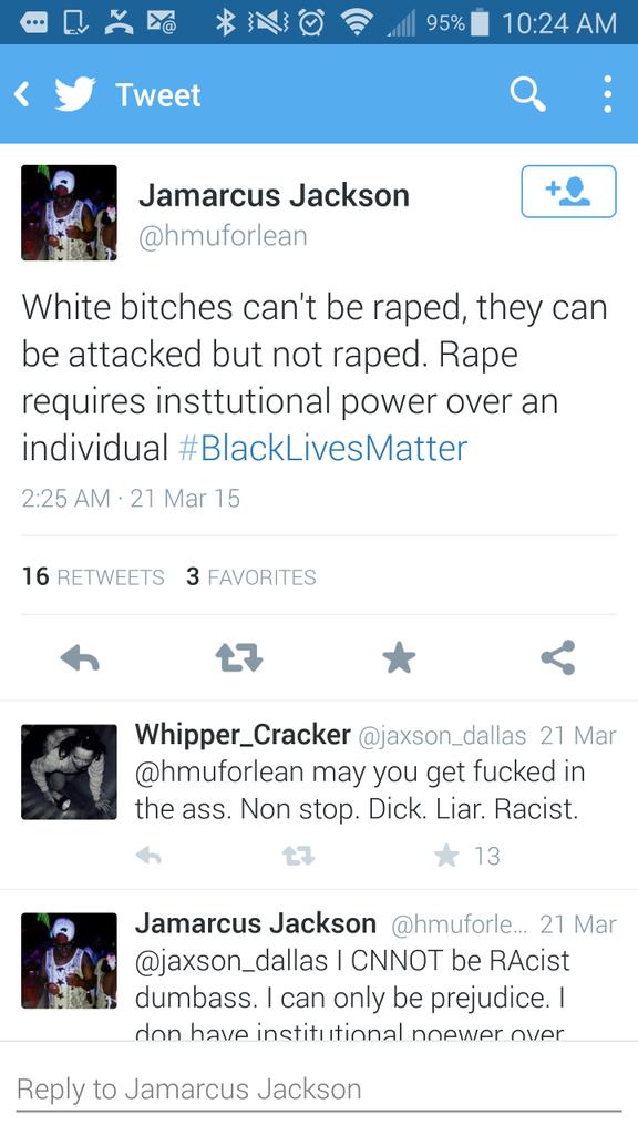 "To try and balance the power white people have had for literally thousands of years. They need to know what it feels like to have their race humiliated and put down like we have had to do forever. Maybe, in about a hundred years, they'll know a mere fraction of what we've had to go through. White people need to understand this so we can all evolve into a better society for everyone or else they'll just have to be left behind."