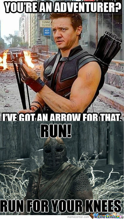 Hawkeye in Skyrim Flag pikachuuniverse (See more...) next random - Fav Favorite Comment ✖ Top NextComment next Tags: avengers | skyrim van’ ... +2 Views: 1004 Favorited: 0 Submitted: 11/05/2015 Share On Facebook -Favorite +Favorite Unsub from pikachuuniverse Subscribe to pikachuuniverse
