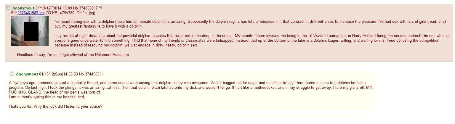 I took back the red thumb after reading up on this **** , but i still think dolphins can be kinda dicks. I saw one bite the head off of a fish and then sex its dead, fishy body.