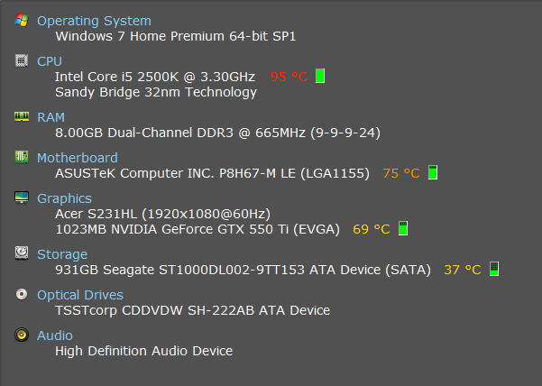 Post picks of internals and cooling system to determine if you have adequate cooling. The processor is supposed to auto throttles a 95c to prevent itself from committing silicon suicide.