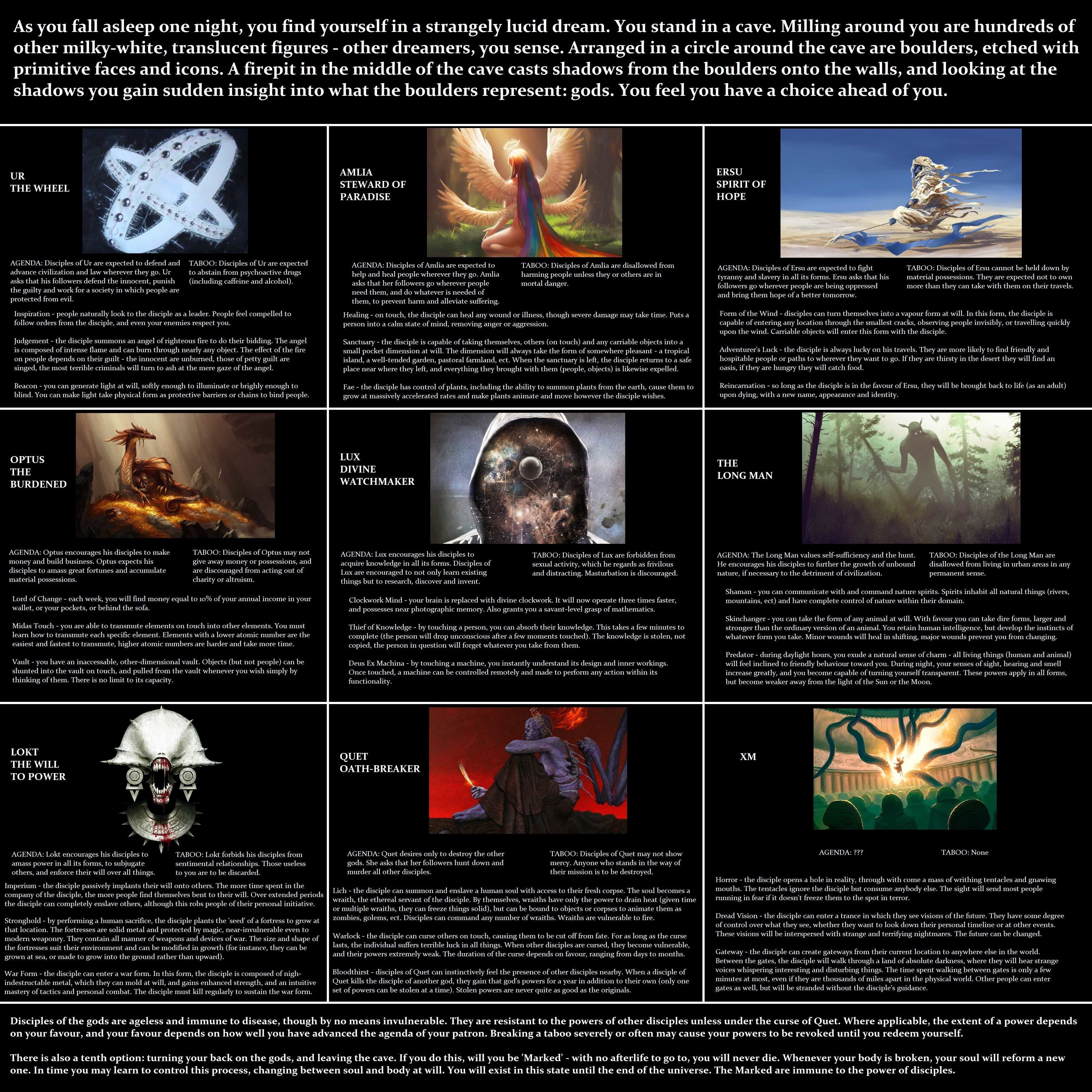 Here's something to think about Flag kalyjama (See more...) next random - Fav Favorite Comment ✖ Top NextComment (Enlarge) In this image there are 9 gods, each god has its disciples with powers and taboos Choose wisely ! next Tags: mind | fuck | gods | God | interesting +17 Views: 2849 Favorited: 7 Submitted: 09/23/2015 Share On Facebook -Favorite +Favorite Unsub from kalyjama Subscribe to kalyjama