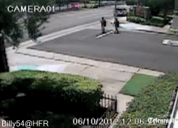 He's probably trying to get the license plate number.
