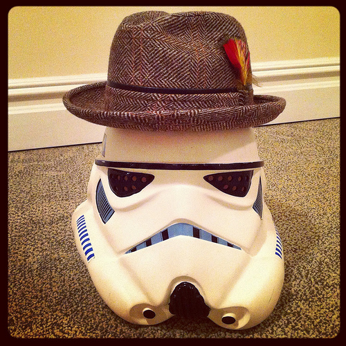 I have the same stormtrooper helmet, from like 1994-1995, when they just punched holes in it for eyes, the ones made years later were not only cheaper, but also had smoked lenses. I actually regret buying that thing when I was like 13.