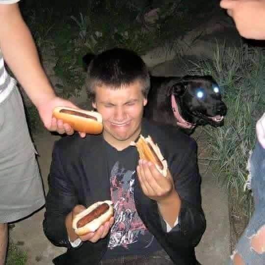 I remember that night. It was the night my dog, Spottie, was going to be exorcised by the priest. Spottie was going to die and mankind would be saved from Satan. I wore all black and I started to walk Spottie to the chapel. Then my friends appeared, holding hotdogs. Spottie loved hotdogs and it was then I knew I wasn't going to be alone.
