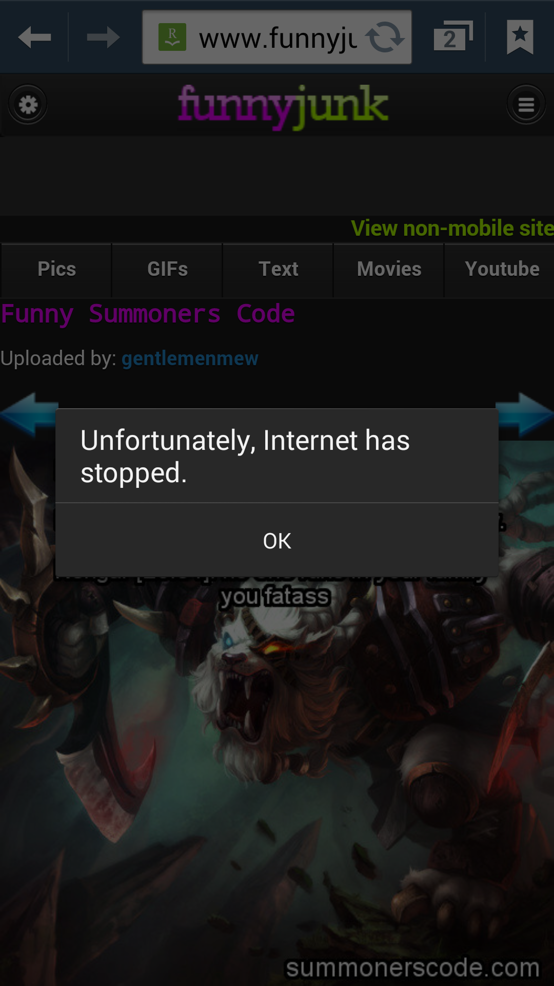 How bad can it get... Flag triggerhappywolf (See more...) next random - Fav Favorite Comment ✖ Top NextComment Last time I was on fj this happened. next Unfortunately, Internet has stopped. ... 0 Views: 989 Favorited: 0 Submitted: 10/10/2014 Share On Facebook -Favorite +Favorite Unsub from triggerhappywolf Subscribe to triggerhappywolf