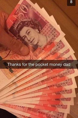 Jesus, I wouldn't even know how to spend that much "pocket money." Do they make a pocket out of the money to put other money in? Is the money for buying pockets? That's more than I make in a month, and I have to live on that, not blow it on random **** . I'm gonna stop now, cuz I could have it worse