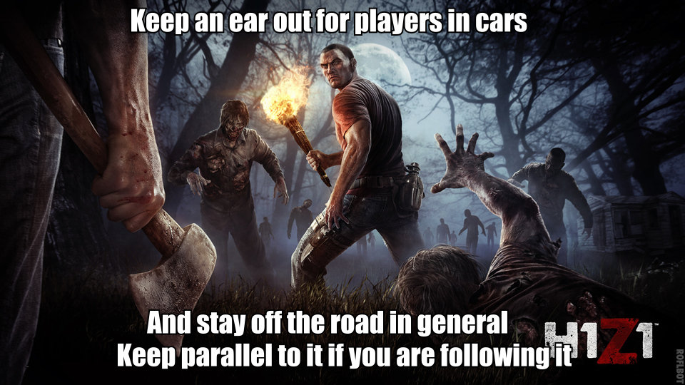 After you scavenge from the cars on the road, duck into the ditch beside it and keep walking. you make a less-obvious target to anyone who's keeping their eye on it with a hunting rifle, and won't be seen by anyone with a car.