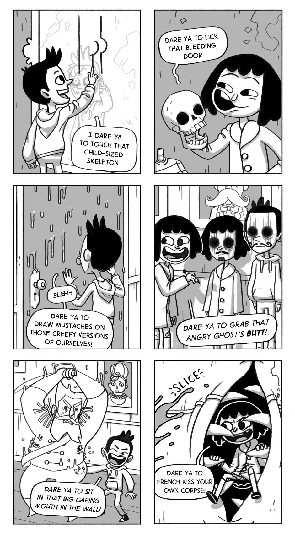 This reminded me of that japanese/eastern comic about two brothers (i think) who enters a haunted house (amusement park-ish) that is there for that current week.