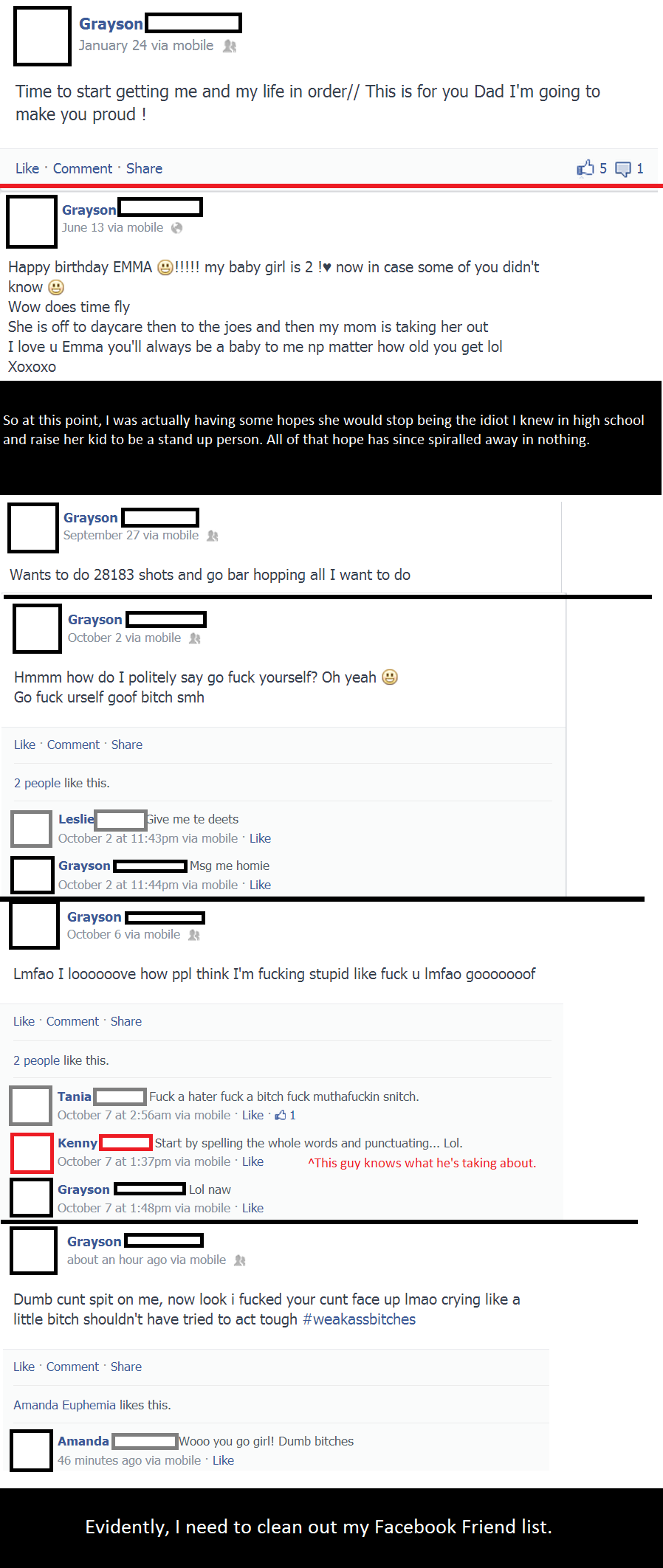 So at this point, I was actually having some hopes she would stop being the idiot I knew in high school