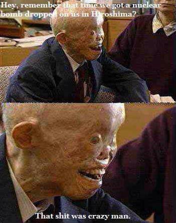 Japan had a long and atrocious list of war crimes going on at that point while they were slaughtering chinese villages. They can deny them all they want and pretend that the bombings were uncalled for. But if you sexually harrass someones little sister. Get told to stop or get the **** beaten out of you, and then rape her and get your **** pushed in you really cant sit there and whine about it afterwards. Just saying. Japan was doing ****** up **** and was warned.