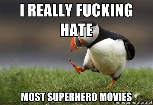 2. superhero movies are only tailored to the target audiance of people who are already fans i feel. I dont like superhero movies of superheroes I've never heard of or cared for.