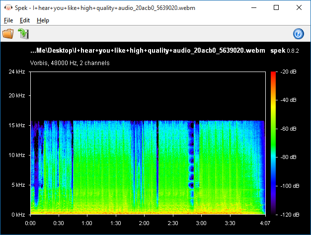 The next step... Was detecting the lies. There are files encoded at 320kbps but the sources for those files were originally 192kbps so although the 192kbps quality is encrypted better, it still doesn't surpass the range of your average 192kbps mp3 file. This is detectable through spectrum analysis like in the picture kuchikirukia uploaded. As you can see, the range cut off is 15kHz. A 160kbps mp3 can easily reach that and the human ear is very much capable of detecting 17kHz. Good ears can even reach 20kHz but you're gonna have to be in a perfectly sound-proof room with high volume to hear that.