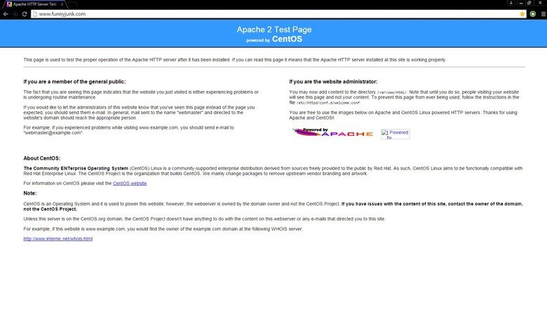 websites domain should reach the appropriate person. Apache and Centos!
