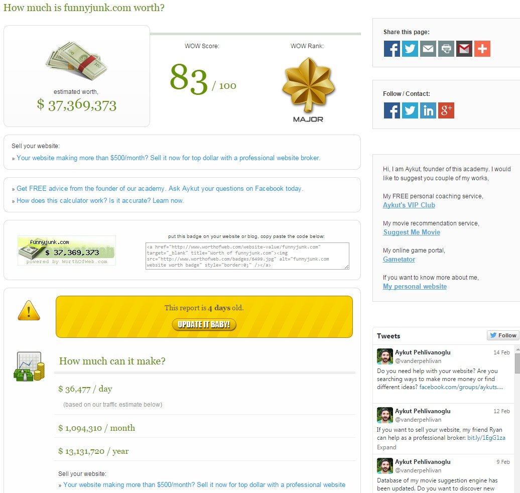 I put my crappy website into the same site and it says it's worth $5000 - but it only brings in $10 per month in revenue. From that $10, my hosting/domain costs are almost $5.