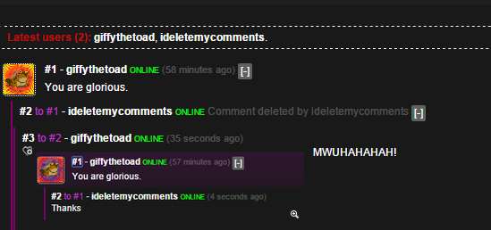 I tried to see if his comment was in the code for the page, I figured it might be because >=mods can see it. all my dreams and ambitions where crushed just because a CERTAIN coder had to code this site well, just like that.