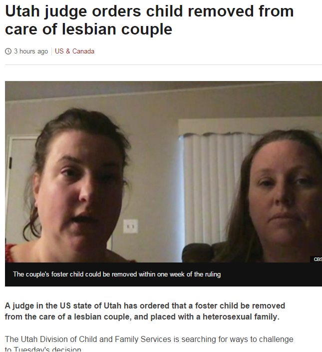 from the care of a lesbian couple, and placed wilt: a heterosexual family.