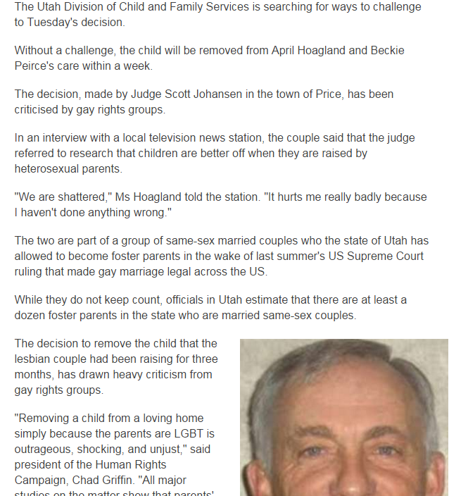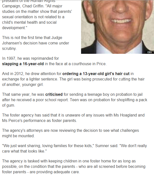 A judge IT me Us state of Utah has ordered that ':e. 1 foster child he removed