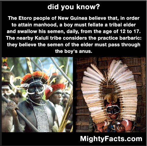 Just look at the wording used at Wikipedia: "Kaluli people also believe that male initiation must be properly done by ritually delivering the semen of an elderly member through the initiate's anus."