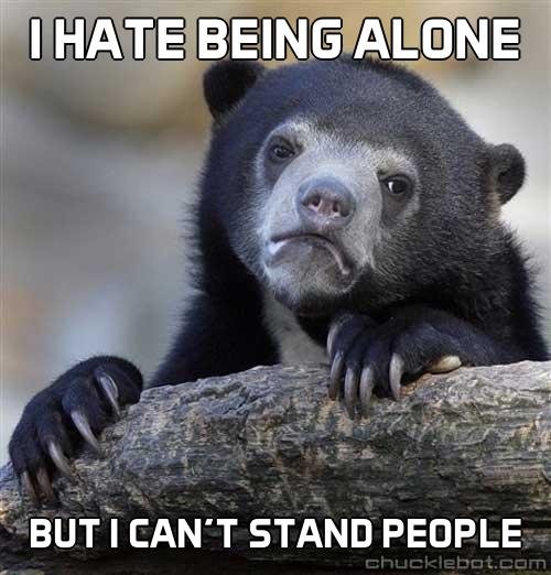 For me personally, I don't mind being alone. It's being lonely that bothers me, and I think people should recognize the difference. Especially when someone tells me I "need" a bf/gf. No one needs one but having a companion to share interesting things with and someone you like spending time with would be great. But people suck in most cases, so there's that.
