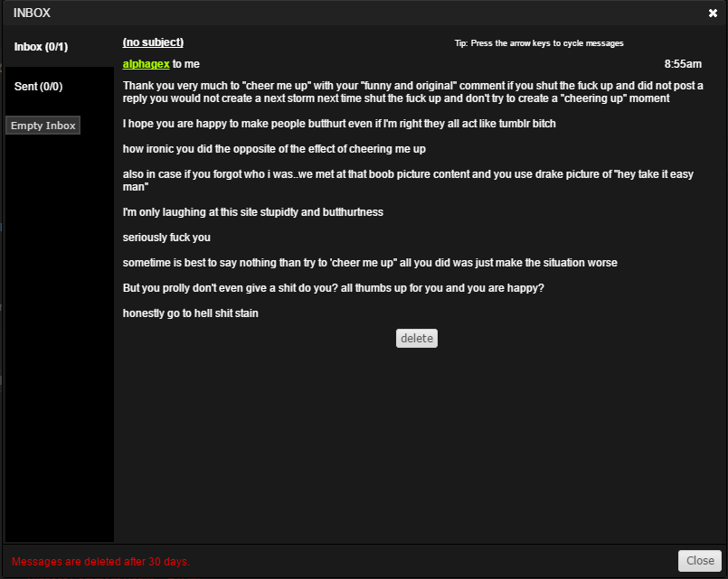sorry if i sound bitter is just i hate when anon talk to me they always say some cancerous **** ..You know when you eat a **** and you try to to cover the taste with some drink..yet there is the after bitter taste of that **** still? that how i feel when the anon replied to me