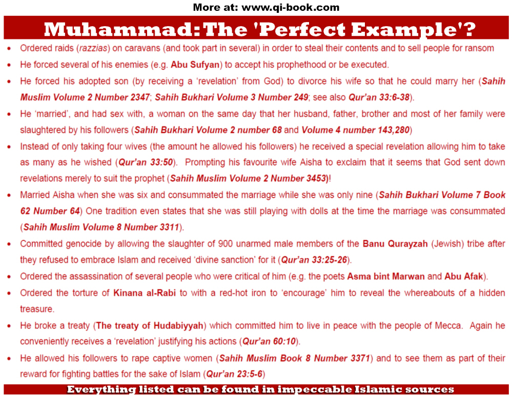 And yet again you open your mouth and nothing but ******** came out. Stay uninformed, hide your head in the sand, I don't care. But don't try to tell me that it's ok for a wanna-be prophet to murder his way through the desert and rape a 9 year old girl.