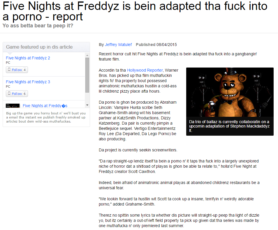 Recent horror cult hit Five Nights at Freddy: is hem adapted tha tuck into a gangbangs n'