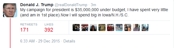 My campaign tor president is , 000, 000 under budget, I have spent very little