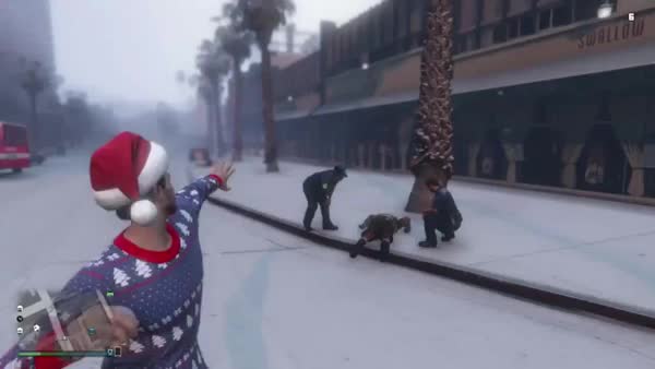 I think by far the funniest part of this gif is at the end where after the officer is under the tire of the car, not only does the player continue to throw snowballs at him, but the driver continues to go forward.
