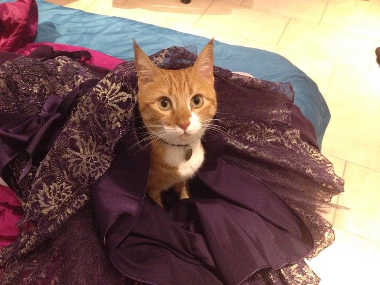 So I have my graduation ball coming up, and I was preparing what to wear. I noticed my cat was very intrigued by my dress, but was pretending to look away every time I also looked in that direction. I left the room for five minutes and came back to this. Just look at that guilty ******* face. Just look at it.