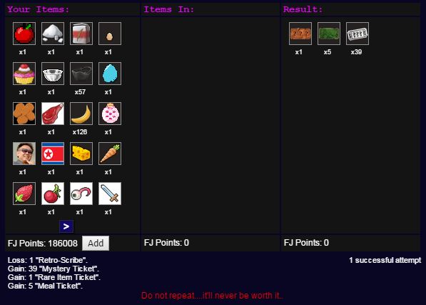 I've been playing this game long enough to know that both admin and RC like to fuck with people from time to time. I've got a good feeling that there's something more to the retro-scribe, but I know that no one's going to be insane enough to test that theory.