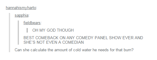 I think the "burn" is more from the fact she meekly claps and looks back to the audience, implying his comedy is sub-par, we really need the audio to understand the situation. I do realise I seem retarded going in so much depth about this...
