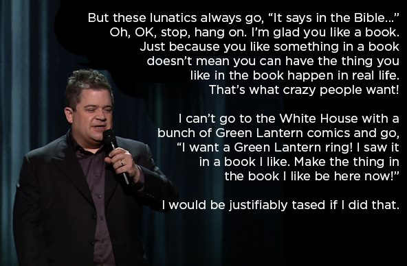 I'm against religion having anything to do with law, but that's kinda a bad comparison, even for a joke. He could've gone with the Jedi code being used on law enforcement.