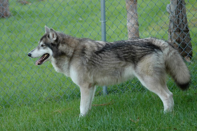 Just for a quick comparison, here is a real mid-content wolfdog around 50%; mixed with Malamute and Husky. They look much different than any malamute or dog you will ever see.