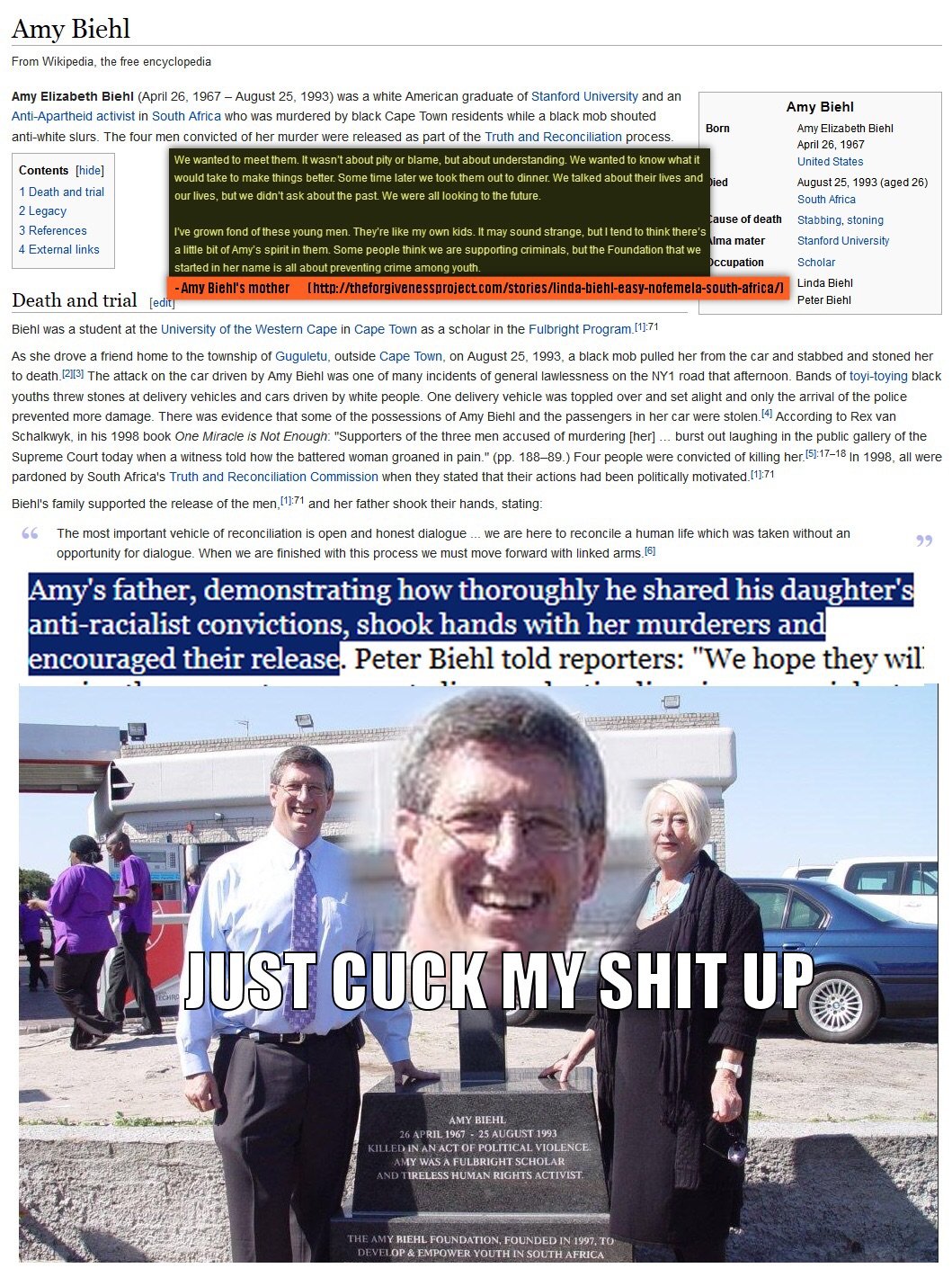 activist in South stride who was murdered by black Cape Town residents while a black mob shouted my la .