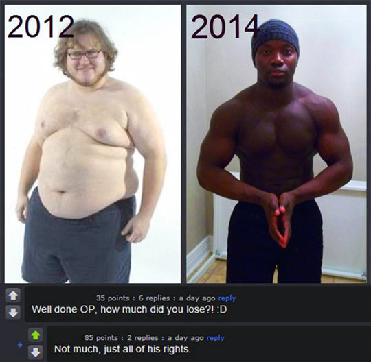 So I haven't commented in ages, but I thought I should. Last January I weighed 280, but I quit drinking for a year. I weighed myself today at 260. So without alcohol, and finally moving into my own place, I've lost 20 pounds without anything extra work. So this year, I'm still not drinking, I'll be cutting out any soda, I already joined a gym and got a trainer to help my lazy ass, and I'm trying to eat healthier. So we'll see what this year brings. I hope to drop quite a bit of weight by June for Core Con and so I look good out on the bike.