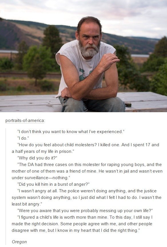 How do you feel about child molesters? I killed ene. And I spent 17 and