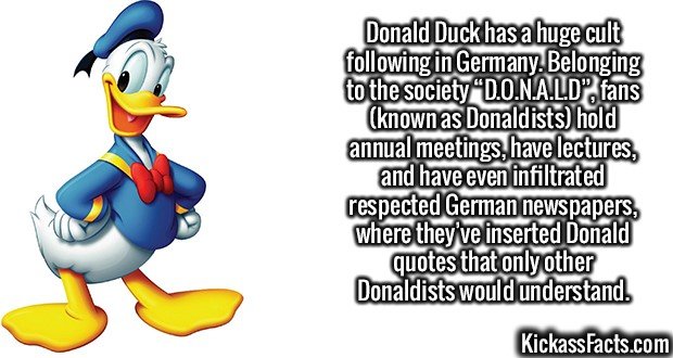 Just if you didnt find anything else, the D.O.N.A.L.D. one is true. When I was little, I went to one of their meetings. Was pretty fun, since I was a huge Donald-Nerd back then. Pic unrelated