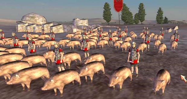 War pigs were used in ancient warfare, to counter against war elephants, which feared the pigs (and their squeals) and would bolt. War pigs were sometimes lit on fire to enhance this effect.