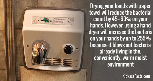 Sure, I'll believe one of the old ****** push-button dryers increases your hand bacteria by 255% but I don't believe that's true of a Dyson Airblade or one of the other high-powered new ones.
