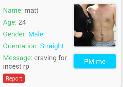 But for real, this guy is king of degenerates. I had a picture of him saying if he knows any girls are into... piss play. A lot more as well, but that was on my old phone.