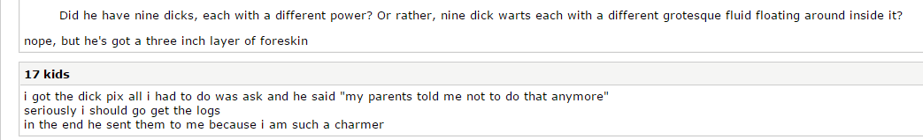 I've seen the special snowflake on tinychat in a dino onesie singing acdc and rubbing kfc wings on his nips sooo spreading around dick pics does not surprise me in the least.