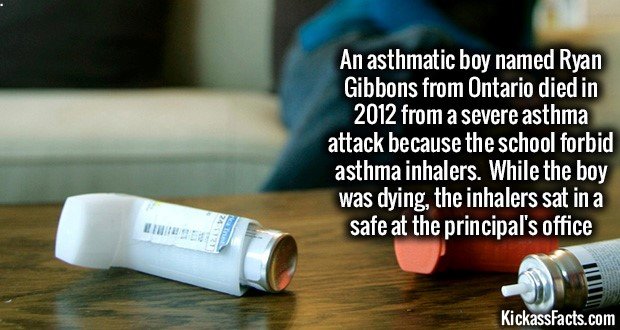 The asthma inhaler one is ********* the school didn't forbid it, at all. what really happened is the mother wanted the kid to have both an inhaler on him and in the office. the mother never sent the second inhaler to the office. the kid lost the inhaler, later had an attack, which did kill him. What really happened is the mother got lazy, the got was a kid and lost his inhaler, and the kid died because of it.