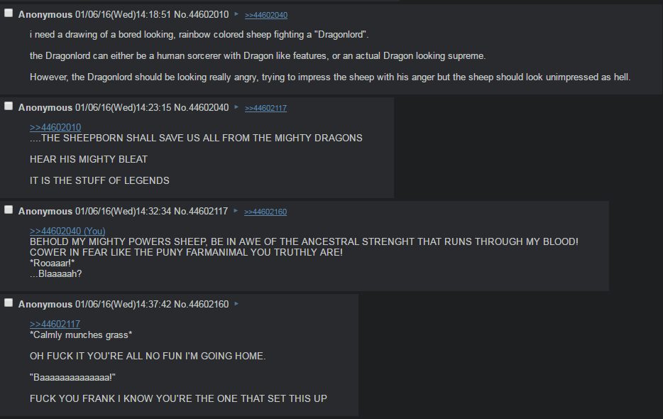 However, the Dragonzard should be looking really angry, trying to impress the sheep with his anger but the sheep should look unimpressed as hell.