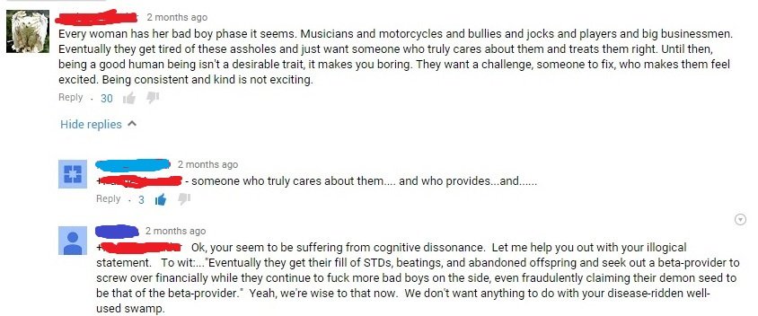 statement. To wit../ Eve ritually they get their fill of STD s, beatings, and abandoned offspring and seek out a to